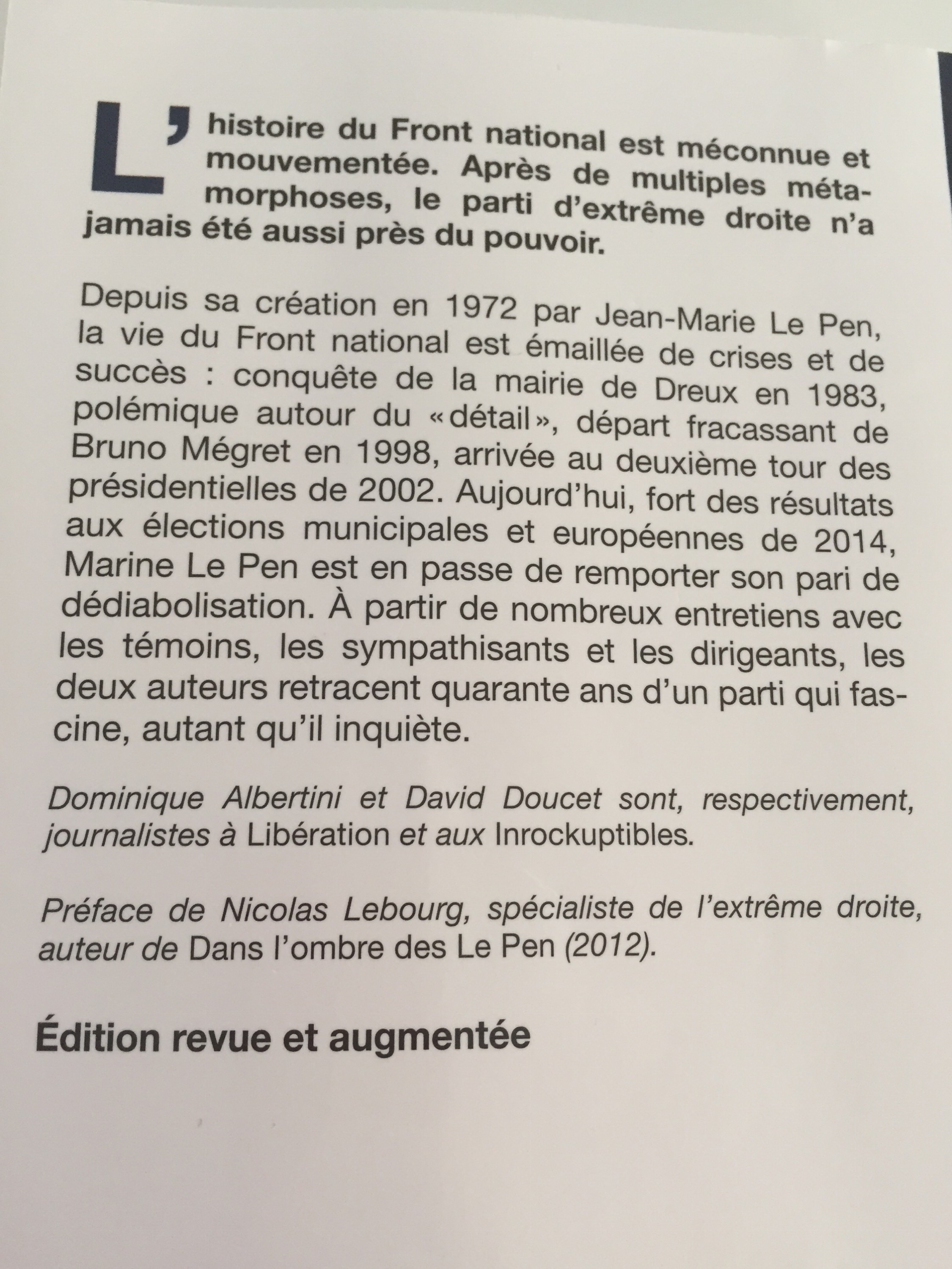 « Histoire du Front national » de Dominique Albertini et David Doucet (Taillandier, collection Texto, 2014)