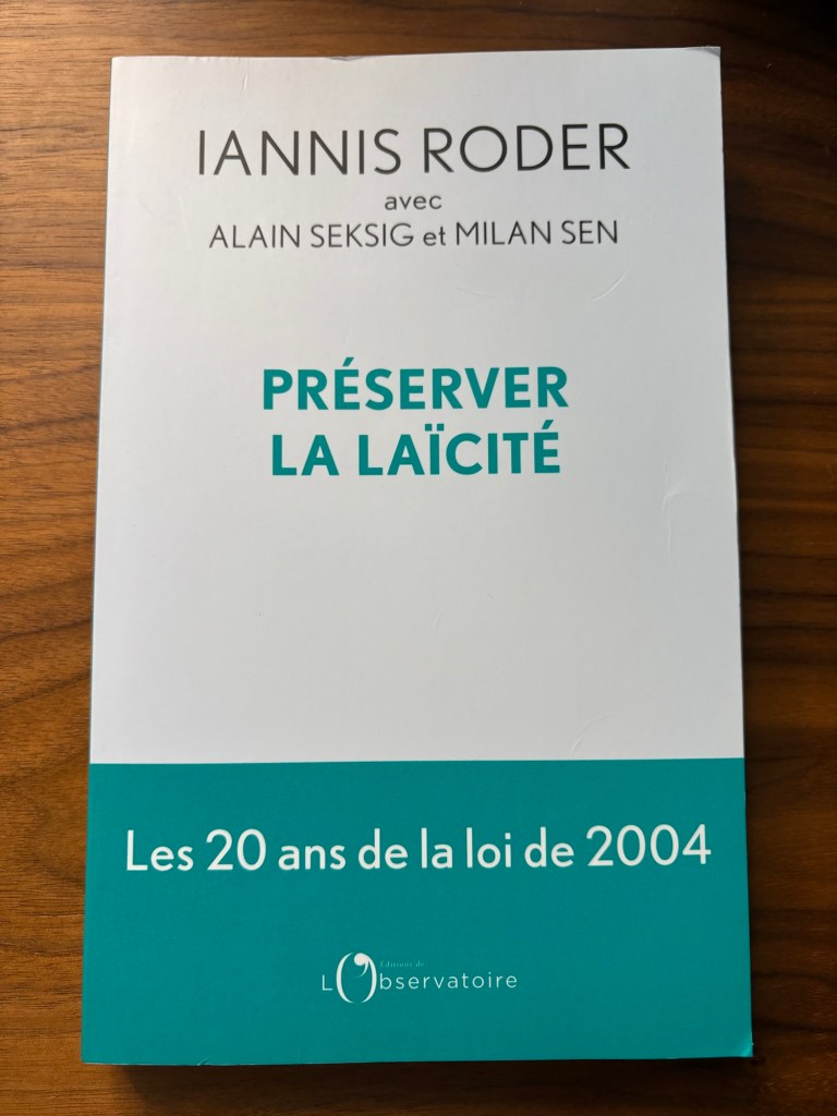 Recension en moins de trois minutes du livre de Iannis Roder, Alain Seksig et Milan Sen : « Préserver la laïcité » ; Editions de l’Observatoire ; 2024